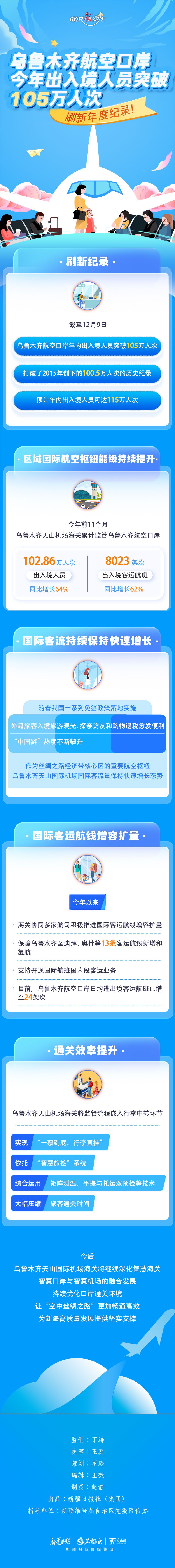 截至12月9日,今年乌鲁木齐航空口岸进出境人数突破105万人次,打破了该口岸2015年创下的年度出入境记录。...
