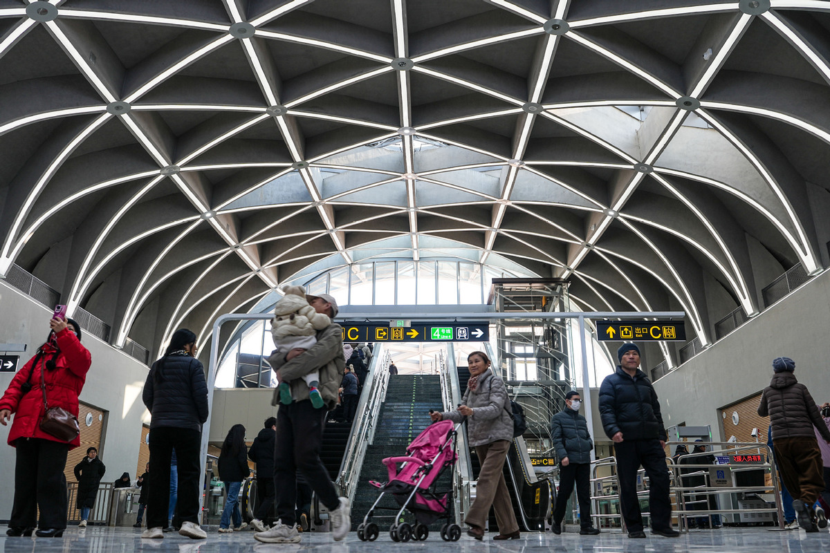 2025年12月27日,山东省济南市,市民进入济南地铁4号线泉城公园站。[图片/新华社]